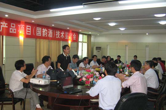 鑒定會上,公司研發中心等部門組成的10人課題組成員就省級重點新產品國韻酒的開發目的、產品定位、開發思路、技術內涵、開發工作進展、社會及經濟效益等方面向專家組做了細致分析說明,并對專家提問一一詳細解答。江西酒業協會饒紹信會長、南昌大學魏華副院長等7位權威白酒專家,經過現場論證和品評鑒定,一致同意國韻酒通過鑒定。