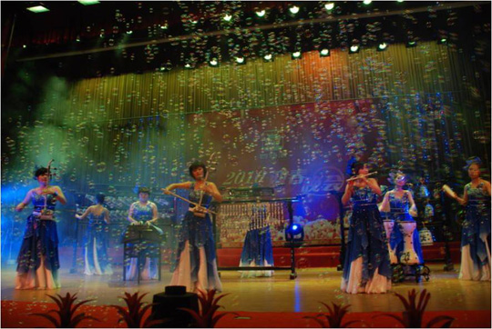 在《騰飛吧,四特》的歌舞聲中,晚會陸續拉開帷幕?!侗娙藙潣_大船》、《相信自己》等歌曲,在四特決策高層、優秀干部的深情演繹下,充滿豪情壯志,寓意深刻?!短亍ば刑煜隆返裙澞咳〔乃奶匕l展現狀,真實反映了公司的飛速發展和四特員工的精神面貌。雜技《肩上芭蕾》、互動魔術《變奏》等外請節目也博得一陣叫好聲。整場晚會節目精彩紛呈,載歌載舞,高潮迭起,抒發了廣大員工對過去一年公司輝煌成績的無比自豪感,表達了四特眾人劃槳開大船、齊心協力鑄輝煌的信心、決心,展示了四特人自強不息、厚德載物的精神風貌。