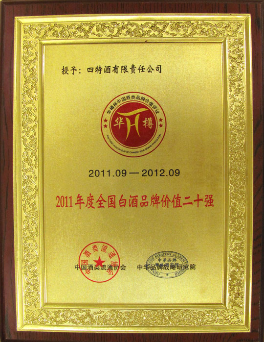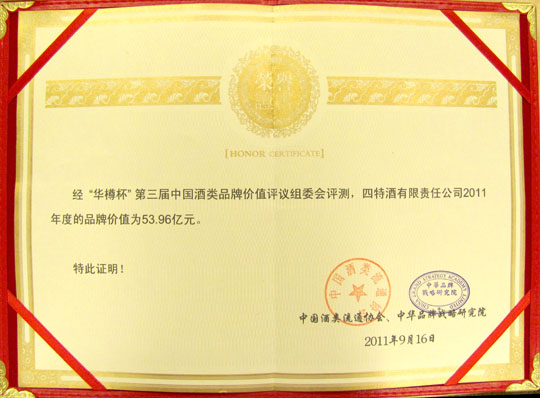 “華樽杯”中國酒類品牌價值評議組委會是經相關部門批準,由中國酒類流通協會和中華品牌戰略研究院共同舉辦的一個全國范圍的酒類企業品牌價值評議組織,自2009年以來,已連續成功舉辦三屆。評議組委會由國內外酒類權威專家學者等組成,采用國際公認的品牌價值評估體系評測,從經濟指標、品牌實力和品牌狀況等方面進行多方考量。在本屆評議中,四特酒憑借著優秀的產品質量和先進的營銷理念,從兩百多家酒類企業中脫穎而出,并毫無懸念的,同時與茅臺躋身“中國酒類十大競爭力品牌”和“十大最具投資價值品牌”,其含金量之重,可謂從側面反映了近年來四特強勁的品牌實力和蒸蒸日上的發展勢頭。