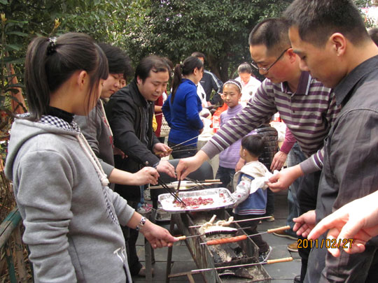 到達梅嶺山頂后,同事們在百喜山莊的庭院中架起燒烤爐,點起木炭火,一起燒烤開來,各式菜肴在燒烤爐上香氣四溢。“火腿腸得先烤一會,然后抹油再烤”、“茄子得整個烤熟才香”,賀恒輝副總在燒烤爐旁不時的示范指導,讓同事們看到了賀總工作之外的另一面風采。大家圍著燒烤爐,吃著熱氣騰騰的烤串,聊著天,氣氛甚是活躍。短暫的中午休息后,同事們又從梅嶺后山步行下山至集合點,搭乘公交大巴返程。